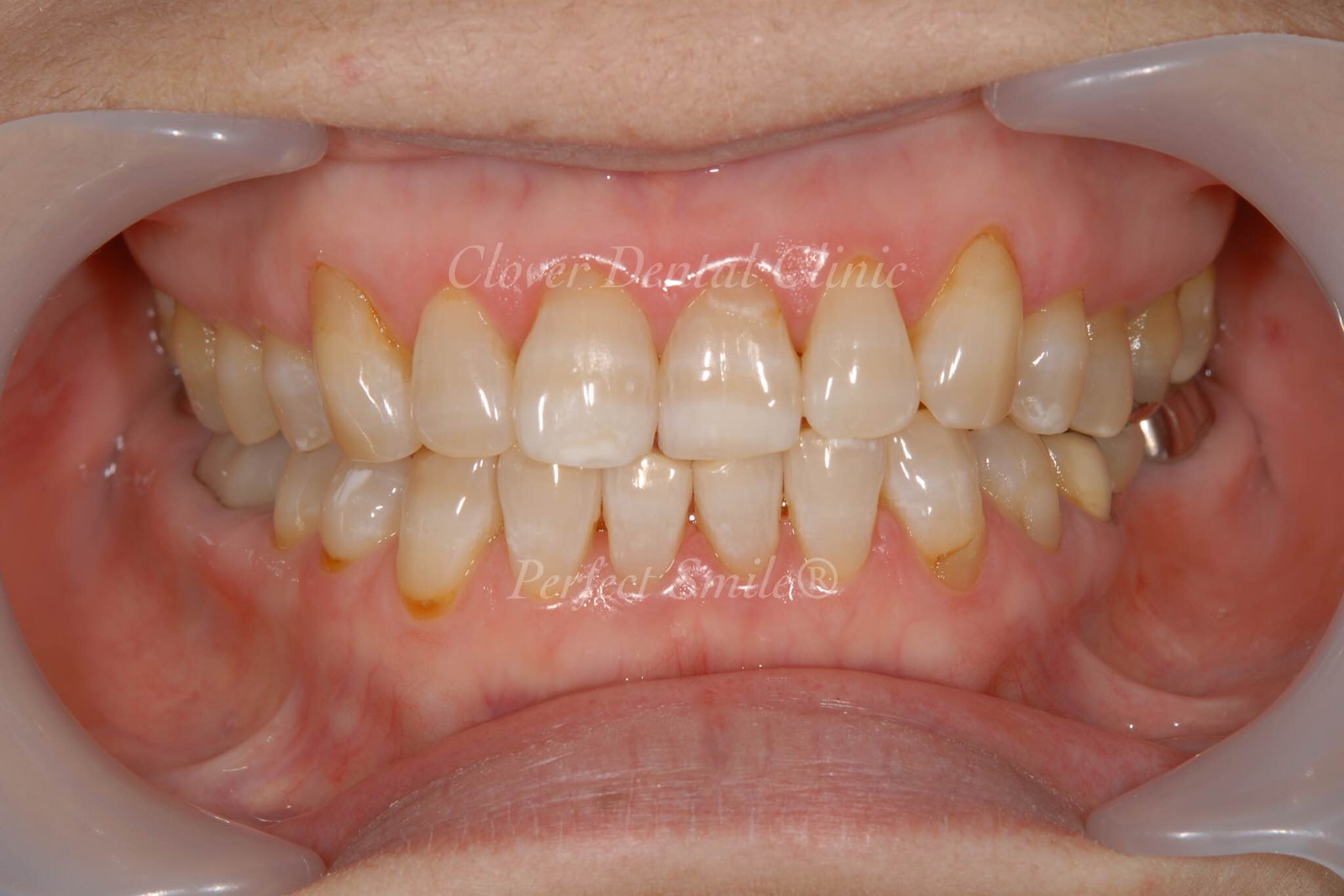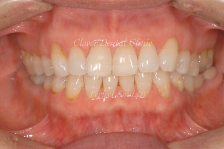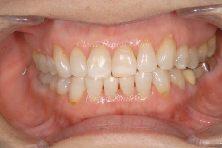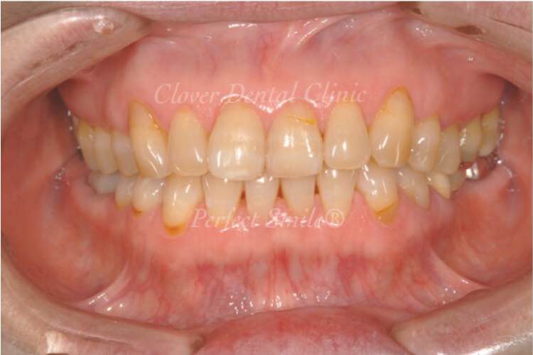 黄ばんだ歯と前に出ている歯を